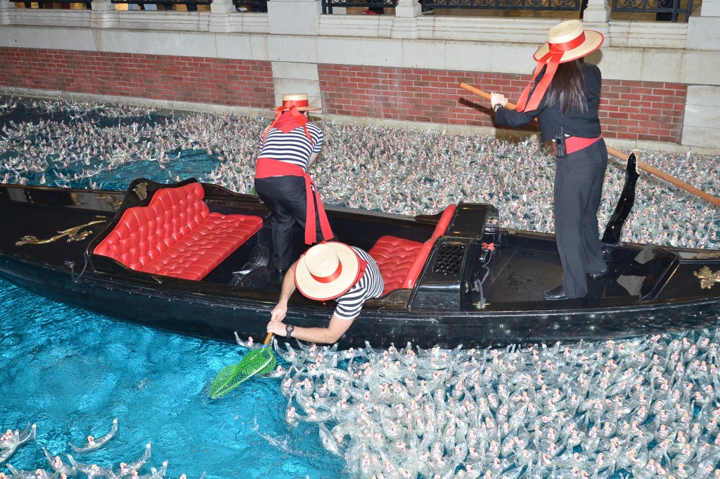 On the 7th of December 2014, Light Up Rotary Great Gondola Grab at the St. Mark Square Shoppers at Venetian, Macau. 10,000 lit-up mini gondolas with LED lights launched in the Shoppers Canal, it was a very spectacular scene. But more than that, we had a global light show of Rotary and club logo in the Cotai strip – Venetian.